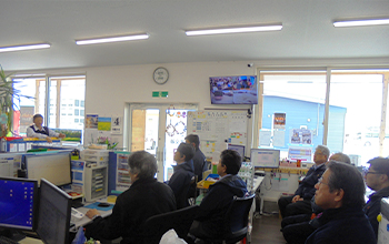 毎月1回、全従業員参加の勉強会を開催し、輸送の安全に関する意識を高めます。